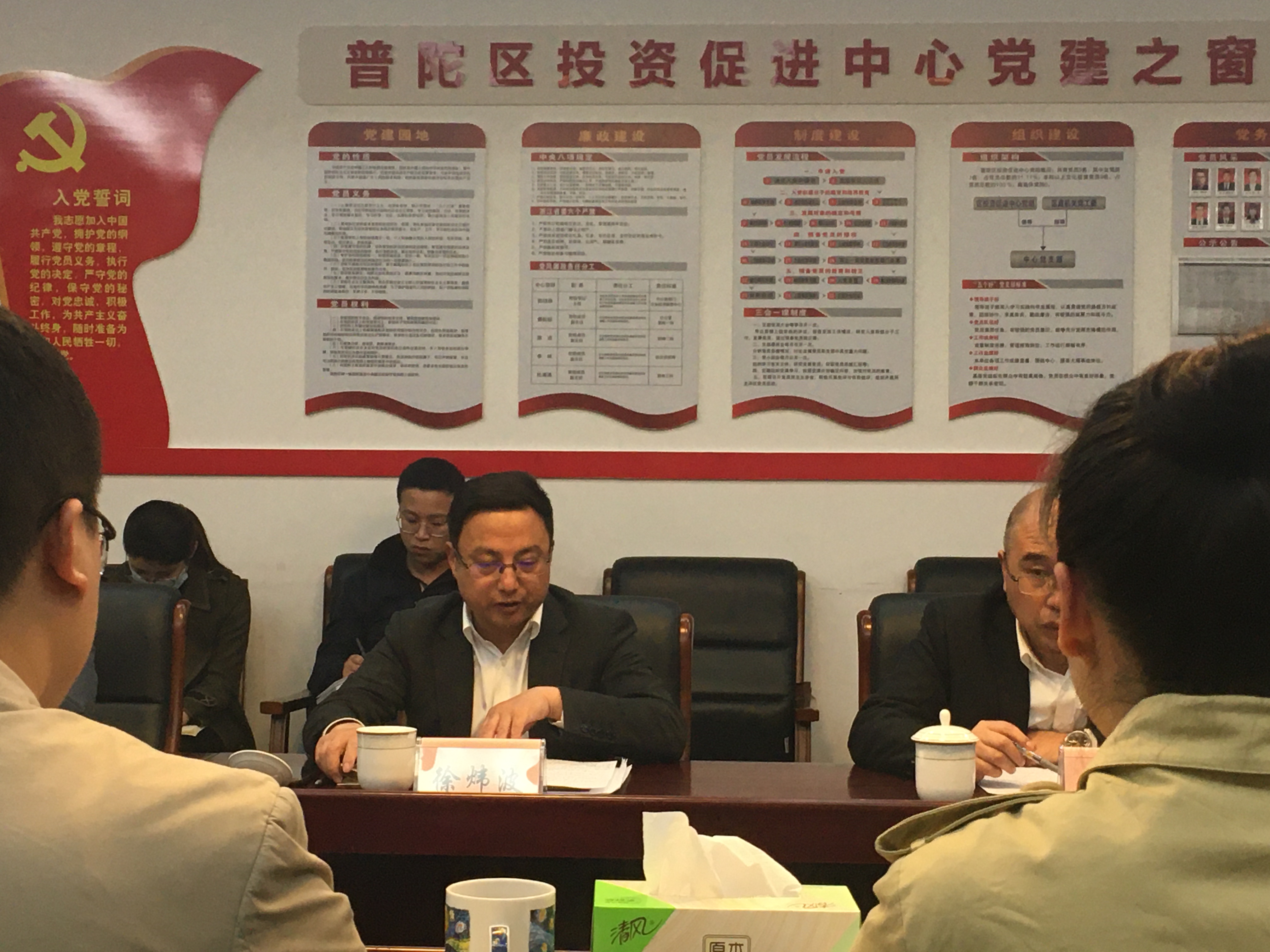 4月19日下午,普陀區區長徐煒波到區投資促進中心開展招商引資工作調研,并與區投資促進中心及相關職能部門開展座談。副區長樂舟龍參加調研。