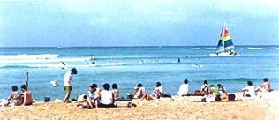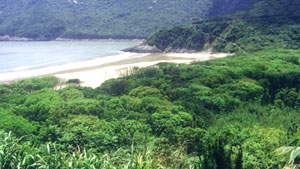 里沙又稱里岙沙,因處里岙村而得名。灘長730米,寬170米,沙質細凈,灘面平緩。長在里沙與里岙曰園之間的“沙蓬林”,由于長年海風不斷吹拂,樹枝一致以背向大海方向延伸,狀若船上篷帆。生態園以它特有的“古老沙城林,綠樹攀青藤”的自然景色,名聲逐年遠揚,素有“天然氧吧”之稱。每年春夏,這里猶如一片綠色的濃煙,海風吹來,綠色伏地滾動;或倏忽間海霧襲來,整個“沙蓬”又呈現出黃、綠、白三種色彩,與前面深藍色的大海和后面茂密成片的古樟林連在一起,構成了一副絢麗奪目、氣勢磅礴的畫面,為朱家尖海灘樹林的一大奇觀。