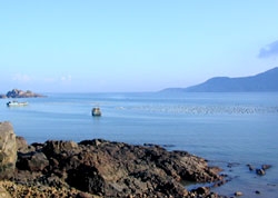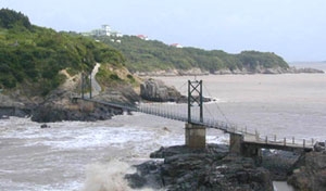 如果您情竇初開;如果您牽手相依;如果您并蒂相連;如果您……不妨請您漫步情人島。 情人島位于朱家尖島的東南面,岸距南沙與東沙之間狎角約百米,退潮時可涉足通過。島呈長形,西北東南向,長千余米,平均寬度約200米,最高處海拔43米。從高處俯瞰,猶如一個“人”字形半島。情人島面積很小,只有0.2平方公里,但她卻以小巧玲瓏和海山奇觀展示著自己獨特的美。如果說沙灘給人以舒適的休閑樂趣,那么,情人島則給人以輕松的浪漫情調。