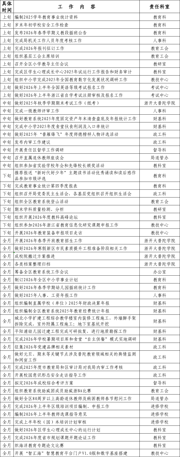 普陀區教育局2026年1月份主要工作