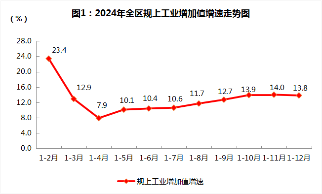 2024年,我區(qū)規(guī)模以上工業(yè)經(jīng)濟(jì)增長勢頭強(qiáng)勁,增加值增速持續(xù)實現(xiàn)兩位數(shù)增長,全區(qū)規(guī)模以上工業(yè)實現(xiàn)增加值79.71億元,同比增長13.8%,居全省第六,全市第一。