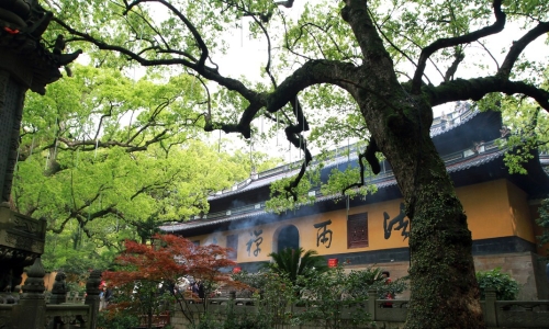 法雨禪寺為全山第二大寺,創建于明萬歷年(1580),原名海潮庵,后改寺。萬歷三十四年改名護國永壽鎮海禪寺。清康熙三十八年,賜“天花法雨”額,改稱法雨寺。 揚枝禪院,地處清涼崗下,緊臨法雨寺。普陀山“三寶”之一楊枝觀音碑珍藏于此。碑高2.34米的楊枝觀音畫像出自唐代名畫家閻立本之手,今為省級重點保護文物。 楊枝觀音碑為省級重點保護文物。明萬歷間根據唐名畫家閻立本所繪楊枝觀音像鐫刻,碑高2.34米,寬1.33米。觀音手執楊柳,形象端龐莊。被譽為普陀山“鎮山之寶。