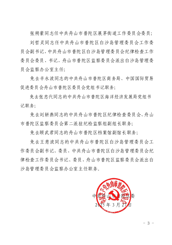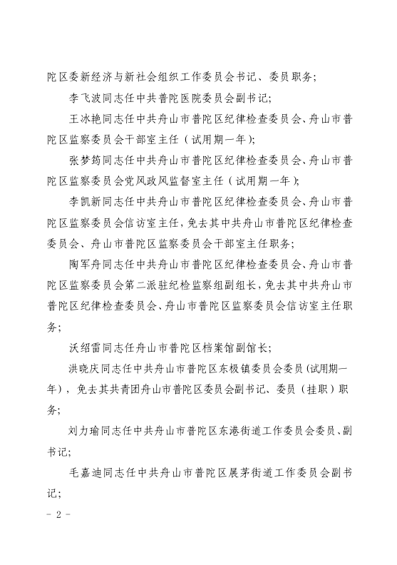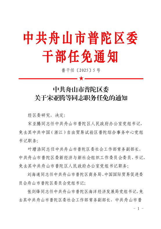 中共舟山市普陀區(qū)委關(guān)于宋亞騰等同志職務(wù)任免的通知
